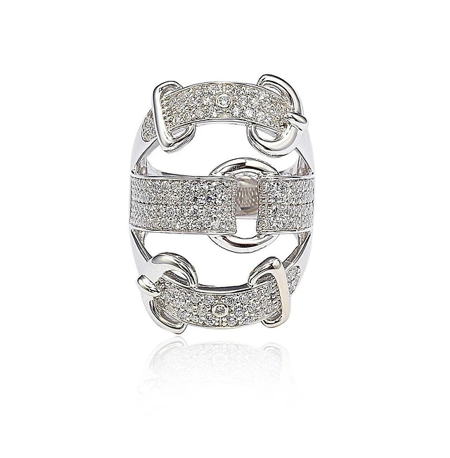 Suzy Levian New York Golden Helix Sterling Silver Cubic Zirconia Oval Coil Ring
