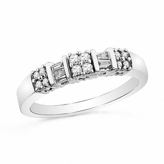 3 CT. T.w. Baguette and Round Diamond Anniversary Band in 14K White Gold
