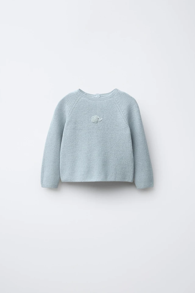 EMBROIDERED ELEPHANT PURL KNIT SWEATER
