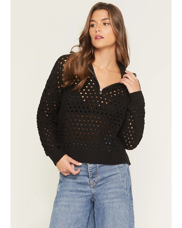 Elan Women's Crochet Half Zip Long Sleeve Sweater