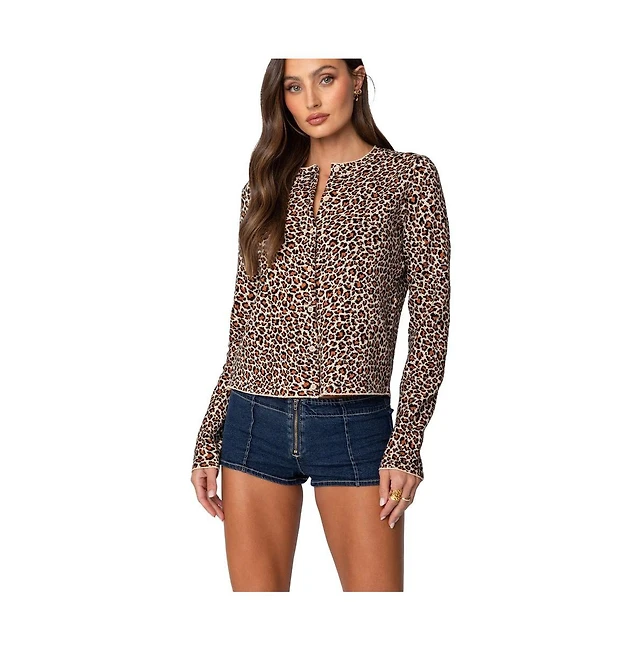Edikted Women's Leopard Printed Knit Cardigan