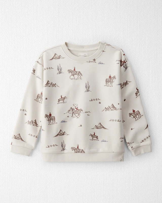 Kid French Terry Sweatshirt Made with Organic Cotton in Western Rodeo Print