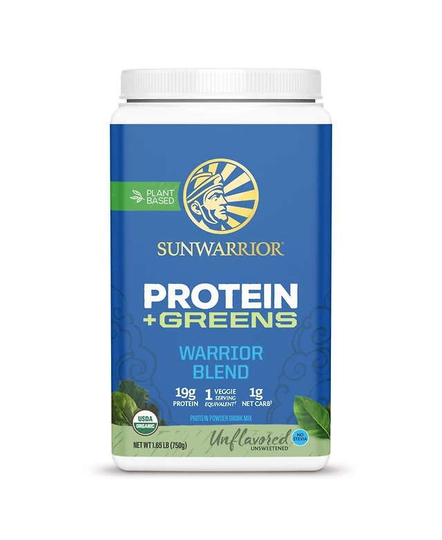 Sunwarrior Organic Warrior Blend Protein + Greens Powder, Plant-Based Protein, Unflavored, Sunwarrior, 750gm