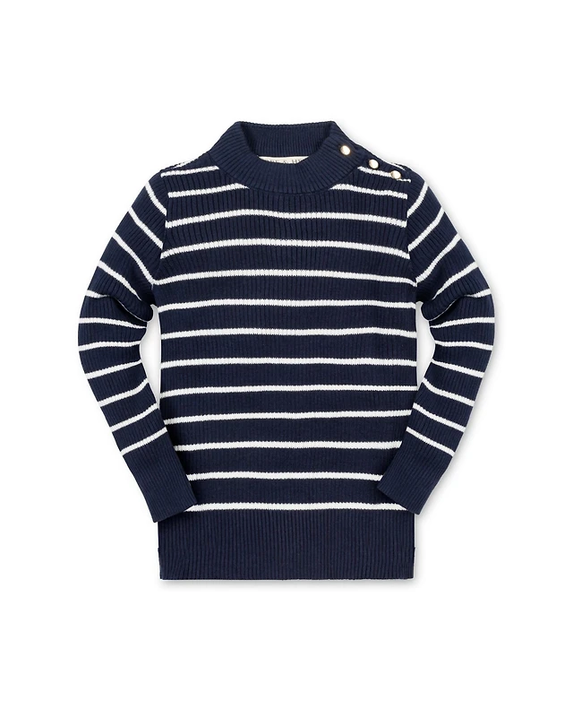 Hope & Henry Little and Big Girls' Organic Long Sleeve Mock Neck Sweater with Gold Buttons
