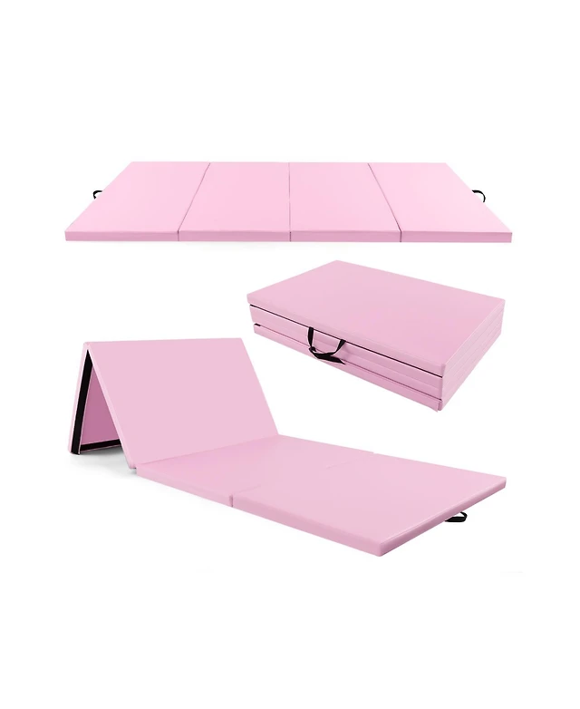 4-Panel Pu Leather Folding Exercise Mat with Carrying Handles-Green