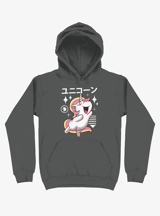 Kawaii Unicorn Asphalt Grey Hoodie