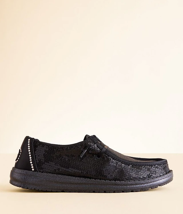 Mens HEYDUDE Wally Glow Skeleton Feet Slip-On Casual Shoe - Black