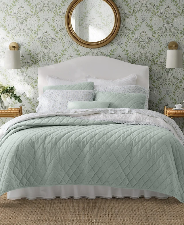Laura Ashley Solid Velvet Diamond Stitch 3 Piece Quilt Set, Twin