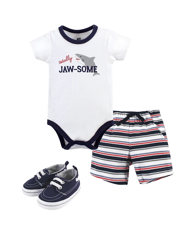 Hudson Baby Girls Cotton Comfort 3Pk Bodysuit, Pants, and Shoes