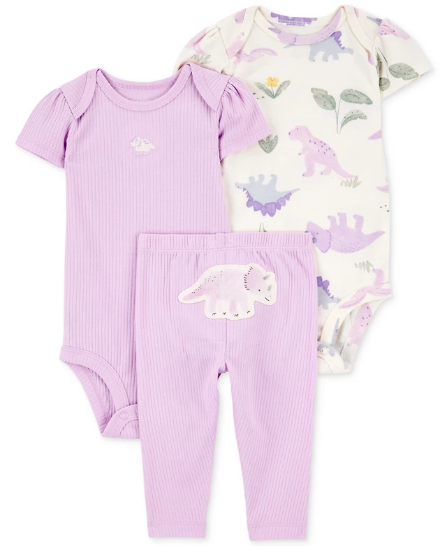 Carter's Baby Girls Dinosaur Little Character Bodysuits & Pants, 3 Piece Set