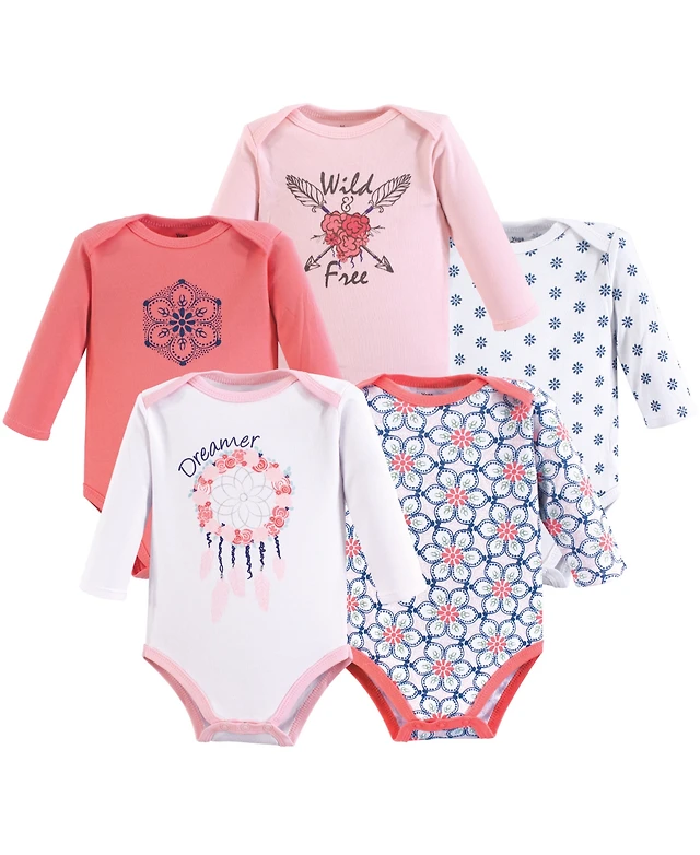 Baby Girl Paint Print PurelySoft Long-Sleeve Multipack Bodysuits - White/Purple