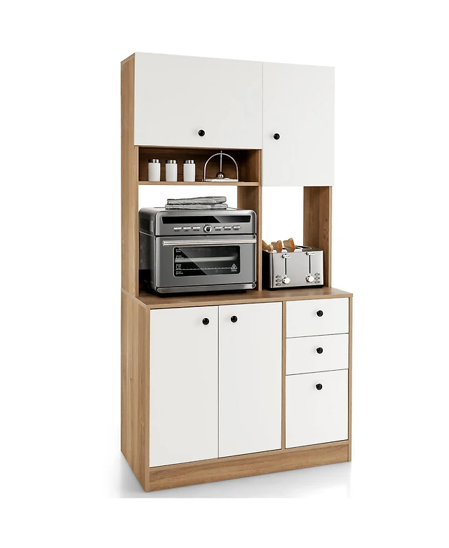 Costway Kitchen Storage Cabinet Sideboard Buffet Cupboard Wood Sliding Door Pantry Brown