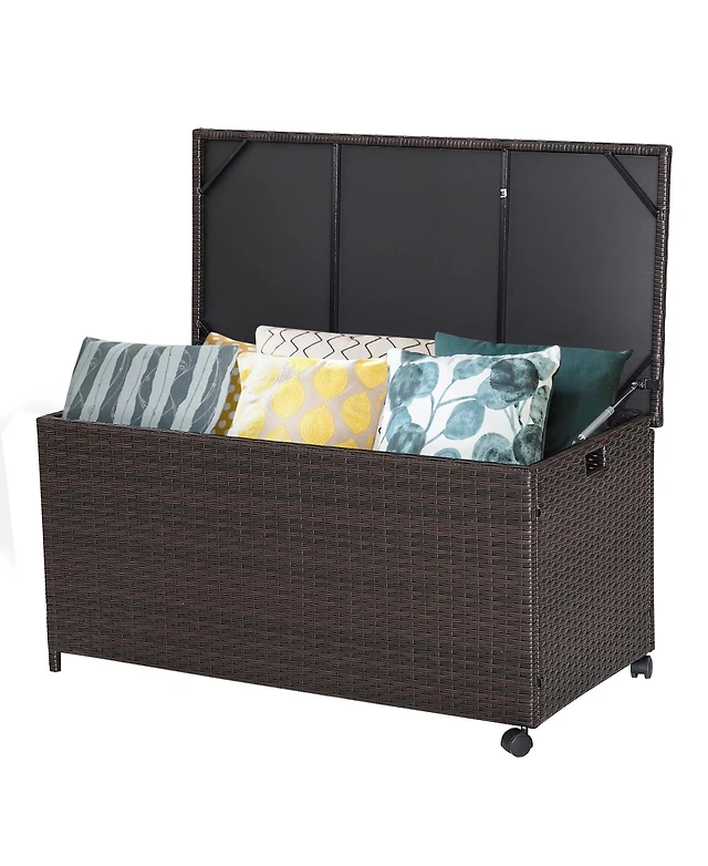 Mondawe Outdoor Resin Willow Storage Box,With Soft Closure Lid And Wheels & Uv/Rain Resistant,Brown