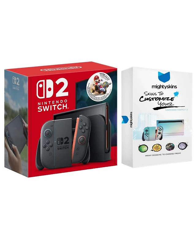 Nintendo Switch 2 + Mario Kart World Bundle with Super Mario Party Jamboree, Extra Joy-Cons and MightySkins Code Bundle