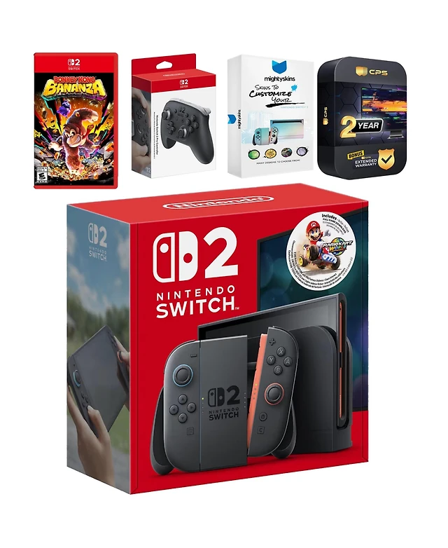 Nintendo Switch 2 Console with Donkey Kong Bananza, Extra Joy-Cons, MightySkins Code and 2 Cps Year Extended Warranty