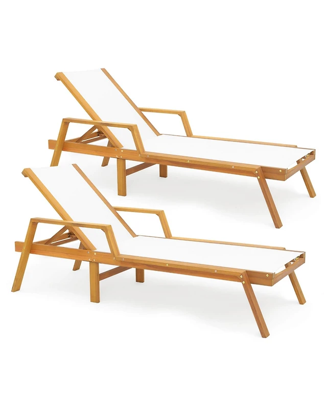 2 Pcs Patio Lounge Chair Chaise Adjustable Reclining Armrest
