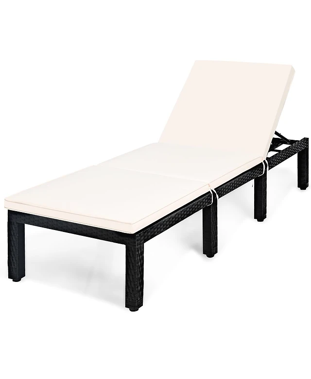 Costway 2 Pcs Patio Chaise Lounge with 6-level Backrest Comfy Seat Cushion & Headrest Backyard