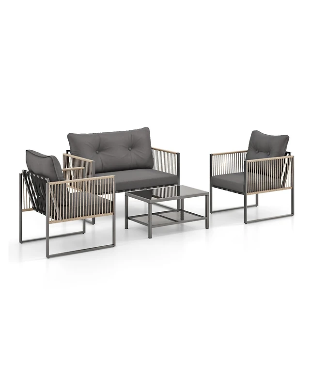 5 Pieces Patio Rattan Furniture Set with Table