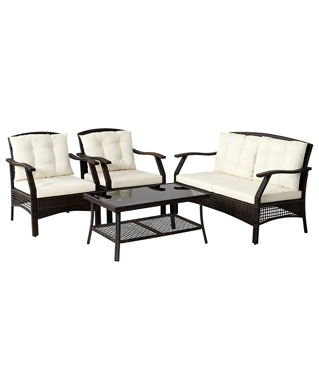 Outsunny Wicker Outdoor Storage Cabinet, Rat Buffet Sideboard,