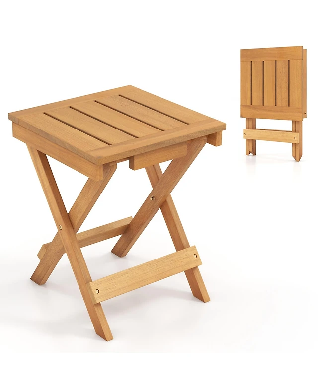 Jonathan Y Nerja Modern Traditional 3-Piece Acacia Wood Half-Rectangular Outdoor Folding Bistro Set, Light Teak