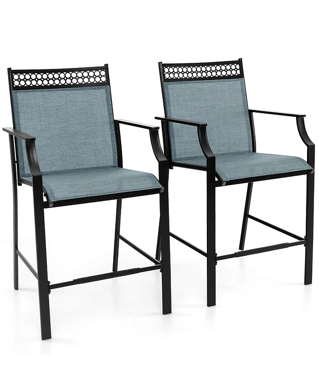 Outdoor Counter Stools Set of 2 with Footrest & Armrests Metal Frame for Backyard