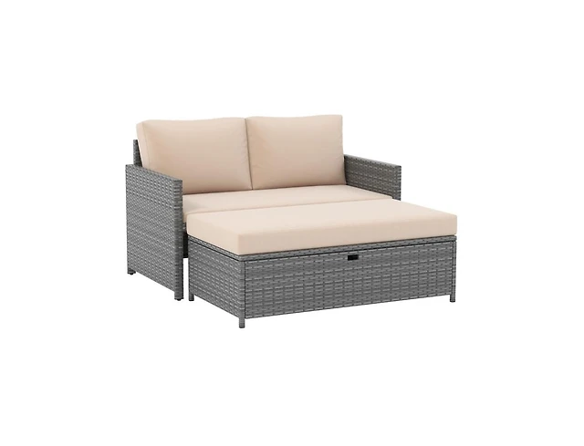 Patio Chaise Lounge Outdoor Rattan Lounge Chair with Retractable Ottoman