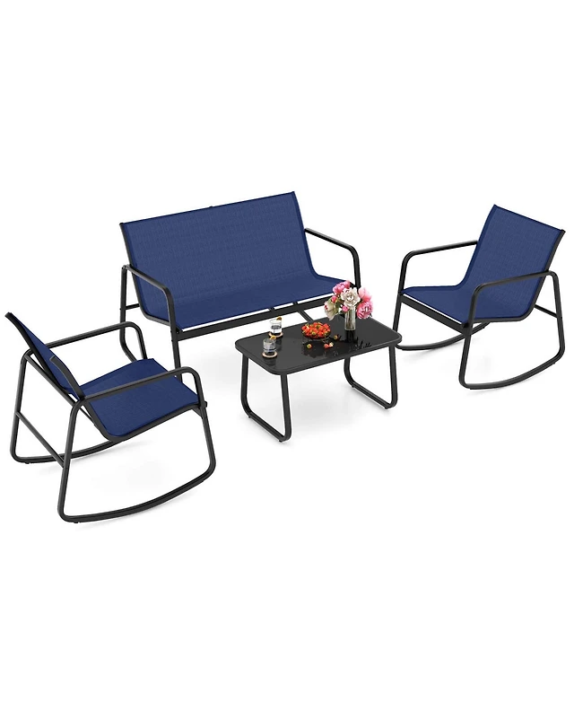 Gymax 4 Piece Rocking Bistro Set Patio Furniture Set w/ Loveseat 2 Rocking Chairs