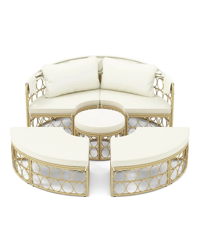 Livabliss Alfresco Alf-9587 Camel 7'3" Round Area Rug, Indoor/Outdoor