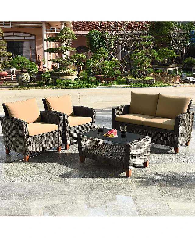 Costway 8PCS Patio Rattan Furniture Set Solid Wood Leg Cushioned Sofa Garden Lawn