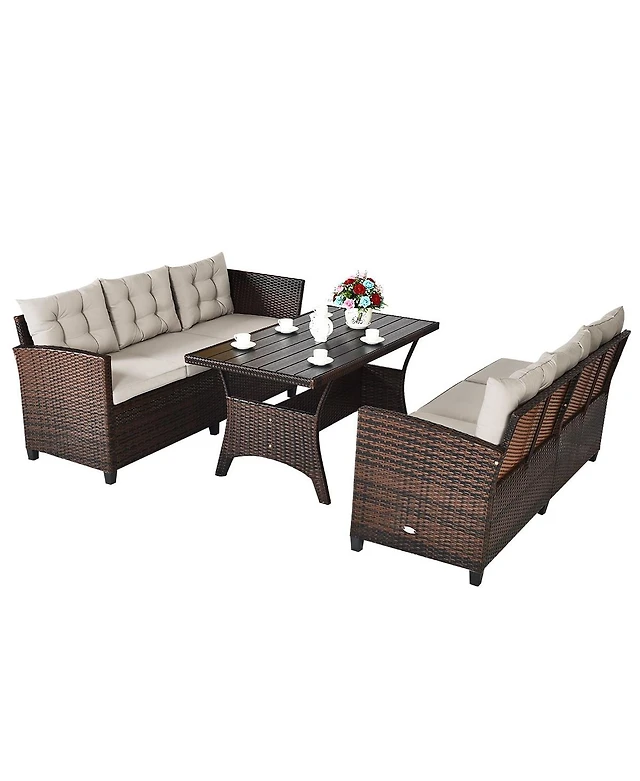 Sugift 5 Pieces Cushioned Patio Rattan Furniture Set with Glass Table