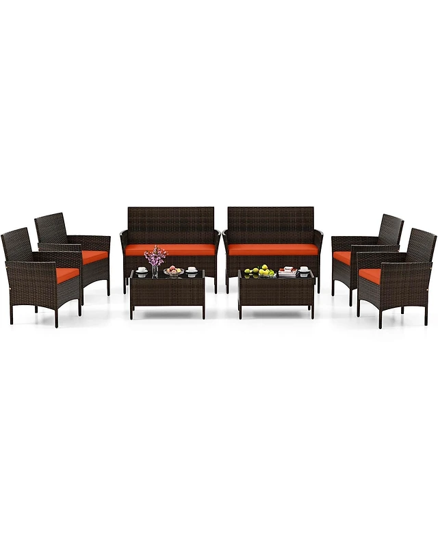 8 Pcs Outdoor Rattan Conversation Set Patio Rattan Sofa Set W/ Protective Cover