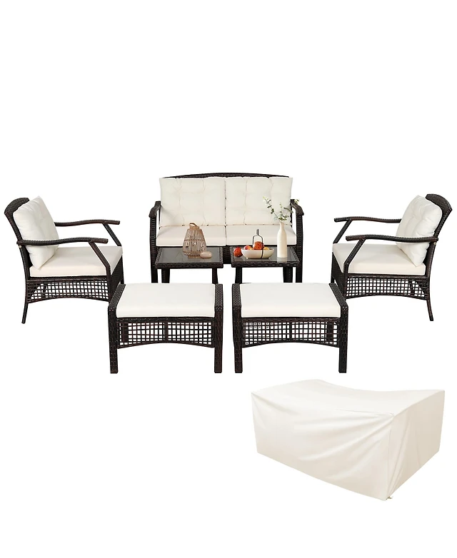 7PCS Patio Rattan Furniture Set Cushioned Sofas Loveseat Yard W/Waterproof Cover