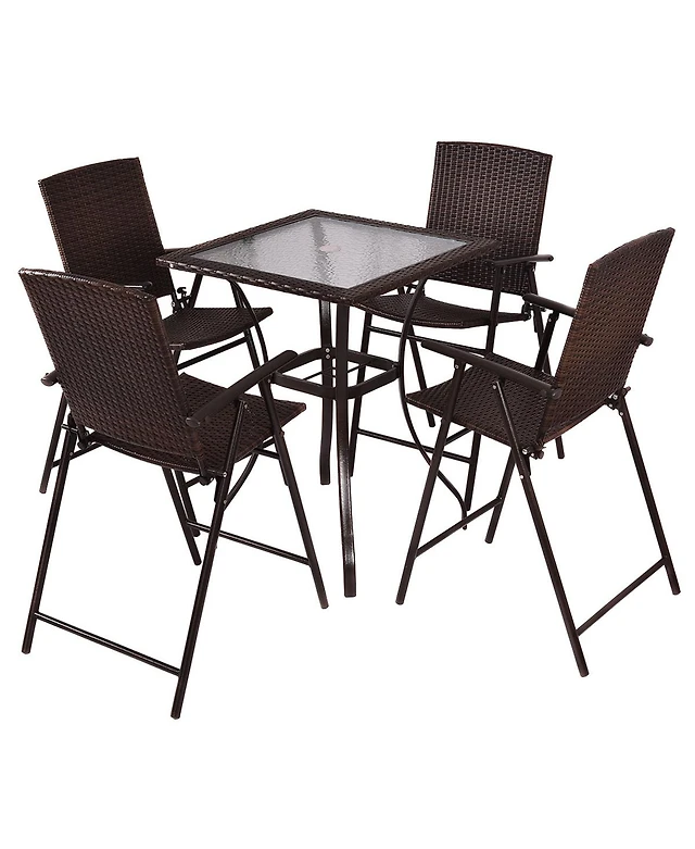 5-Piece Outdoor Patio Metal Frame Dining Table Set with Stackable Chairs