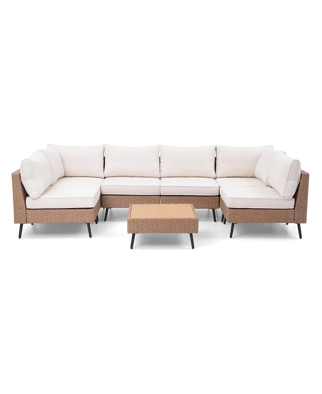 Gymax 7PCS Rattan Patio Conversation Furniture Set Cushioned Outdoor Wicker Sofa Set