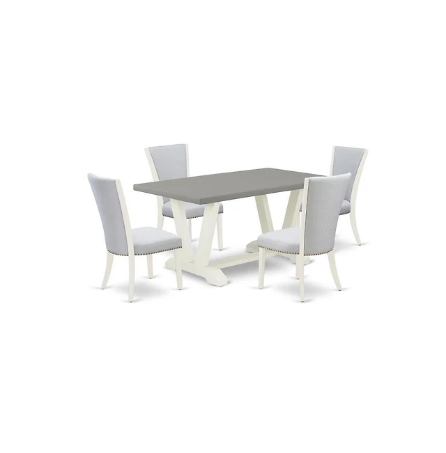 East West Furniture 5-Piece Modern Dining Table Set- 4 Dining Room Chairs and Breakfast Table - Linen Fabric Seat and Slatted Chair Back