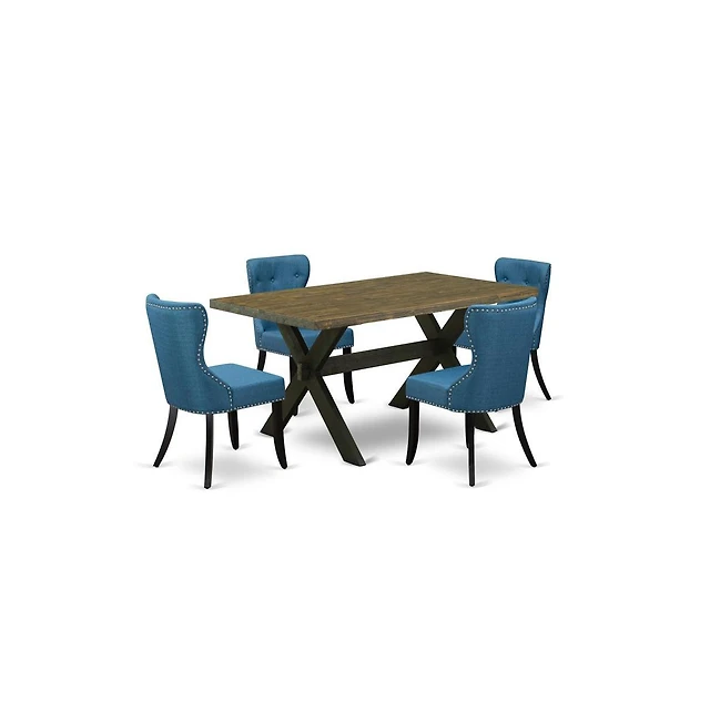 East West Furniture 5-Piece Modern Dining Room Set an Excellent Distressed Jacobean Dining Table Top and 4 Attractive Linen Fabric Parson Chairs with