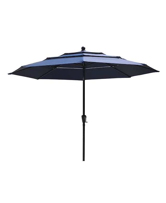 3-Tier Outdoor Patio Umbrella with Polyester Canopy, Push Button Tilt and Crank - 10' - Navy
