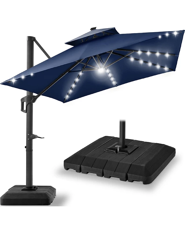 Best Choice Products 10x10ft 2-Tier Square Outdoor Solar Led Cantilever Patio Umbrella w/ Base Included