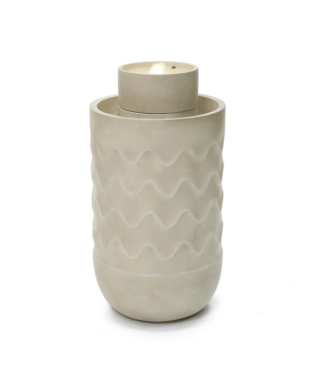 LuxenHome Gray Resin Column and Bowl Sculpture Outdoor Fountain with Lights