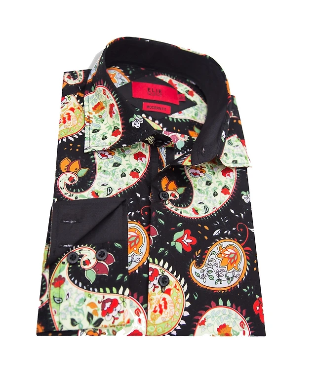 Men's Slim Fit Non-Iron Floral-Print Performance Stretch Dress Shirt