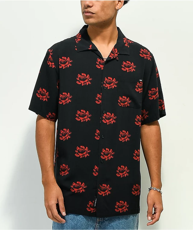 Vans Valentine's Day Black Short Sleeve Button Up Shirt