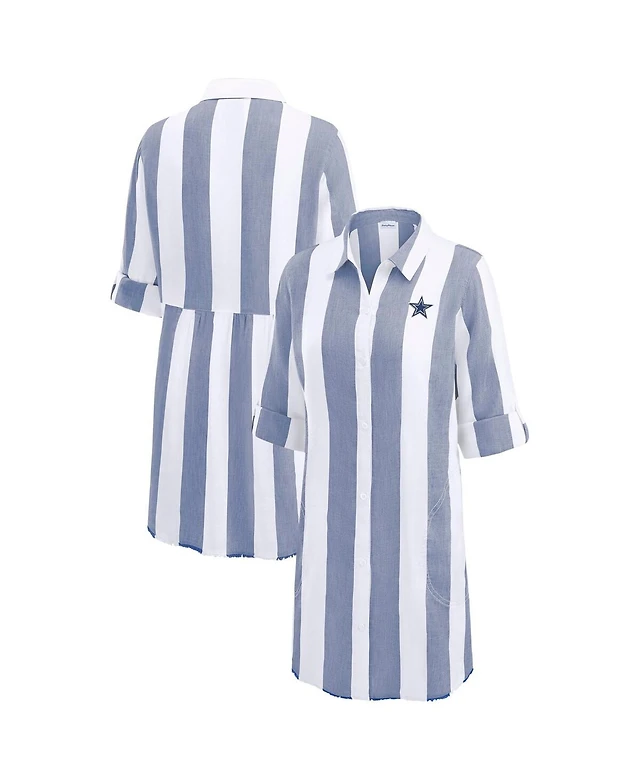 Tommy Bahama Women's Khaki/White San Francisco 49ers Rugby Beach Stripe Button-Up Tunic Top