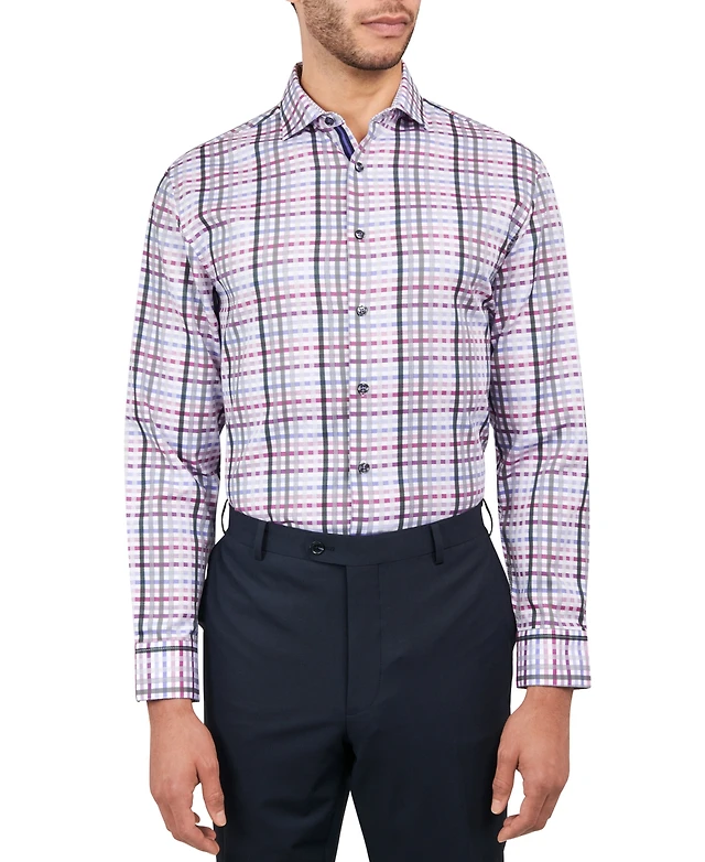 Tayion Collection Men's Slim-Fit Check Dress Shirt