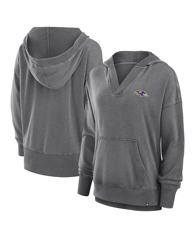 Fanatics Women's Heather Charcoal Baltimore Ravens Initiative Snow Wash French Terry V-Neck Pullover Hoodie