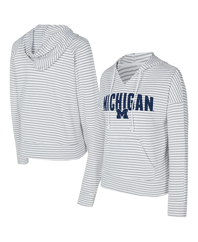 Concepts Sport Men's White/Gray West Virginia Mountaineers French Terry Striped V-Neck Pullover Hoodie