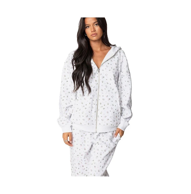 Edikted Womens Bouquet Oversized Zip Up Hoodie