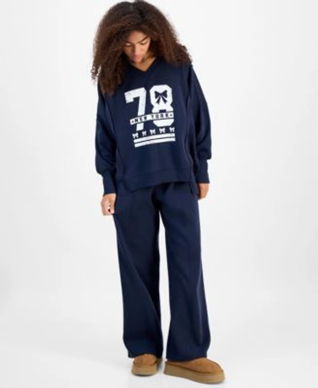 Planet Heart Juniors Oversized Graphic Print Sweatshirt High Rise Fleece Pants