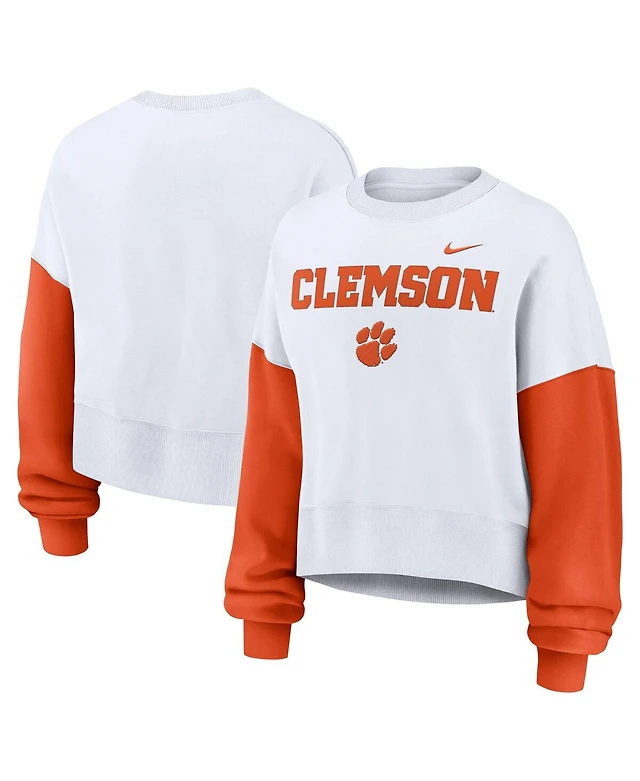 Nike Women's White Clemson Tigers Oversized Color Block Pullover Sweatshirt