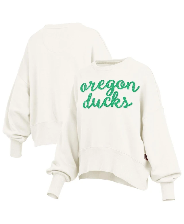 Pressbox Women's White Oregon Ducks Oversized Janice Retro Waist-Length Sweatshirt