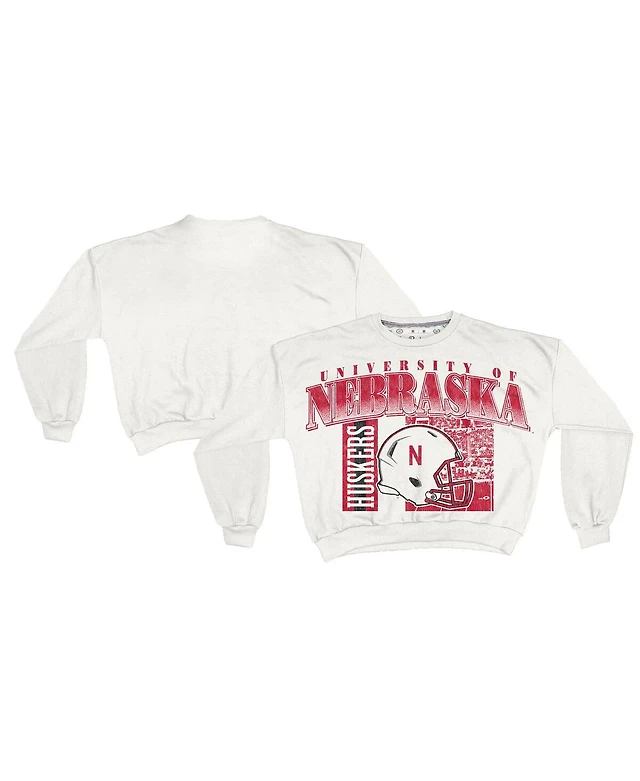 Pressbox Women's White Washington Huskies Oversized Janice Retro Waist-Length Sweatshirt